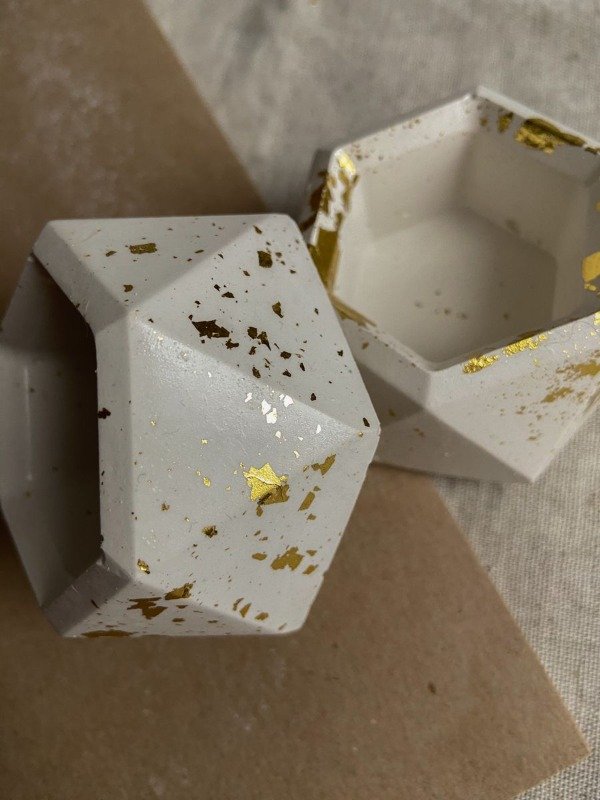Maceta en Mix de concreto con acabado satinado y toques oro.
